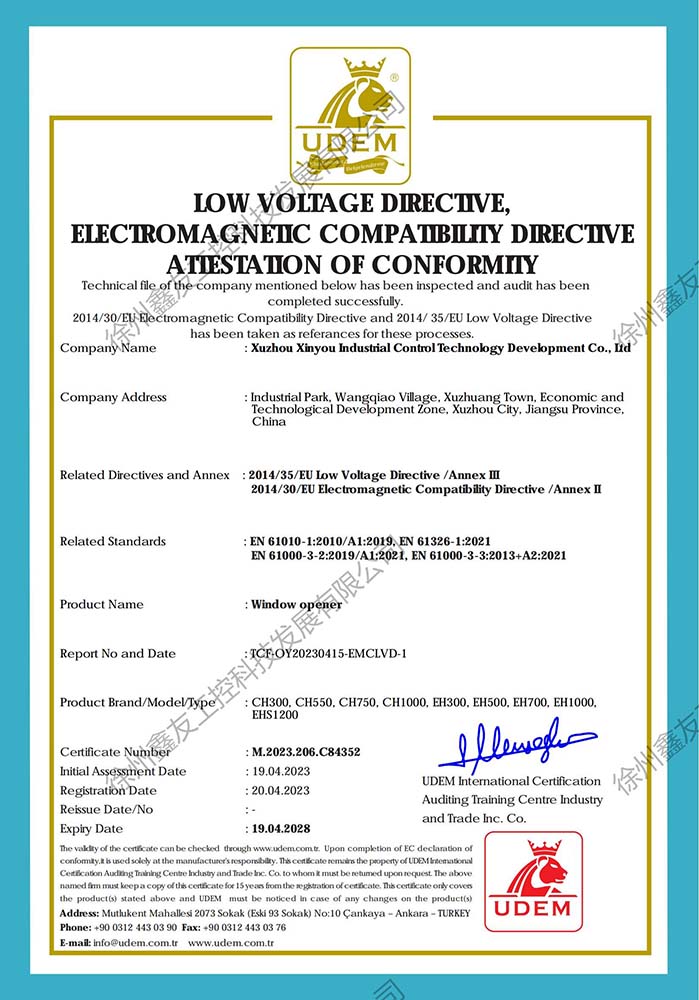 徐州鑫友工控科技發(fā)展有限公司成立于2008年,占地31600平方米,全資子公司:江蘇良紫工程科技有限公司,旗下 有“鑫友”及“MASTER.W主人窗控”兩個品牌系列,公司全面貫徹執(zhí)行IS09001:2015質量管理體系標準,產(chǎn)品順利通過歐盟CE認證和中國***消防電子產(chǎn)品認證,通過可燃性粉塵環(huán)境下、爆炸性環(huán)境下防爆合格產(chǎn)品檢驗。排煙天窗整窗通過***消防產(chǎn)品質量監(jiān)督檢驗中心檢測。先后獲得多項******及榮譽證書。集研發(fā)、加工、生產(chǎn)、制造、銷售、安裝及售后于一體,是一家高起點、研發(fā)能力強的專業(yè)智能化***技術企業(yè)。